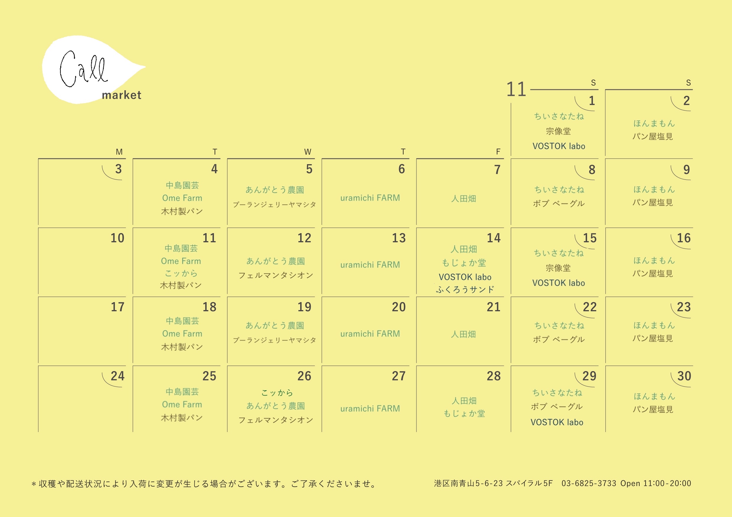 今月の荷情報については、下記のカレンダーをご覧ください。