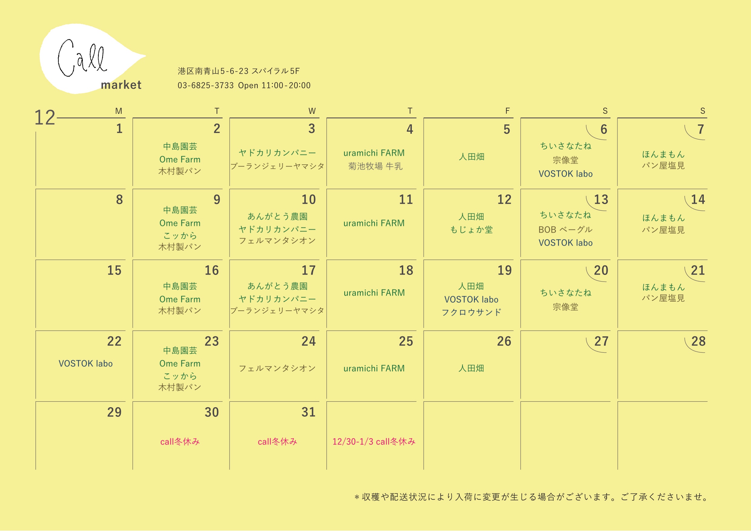 callマーケットカレンダー | 2025年12月