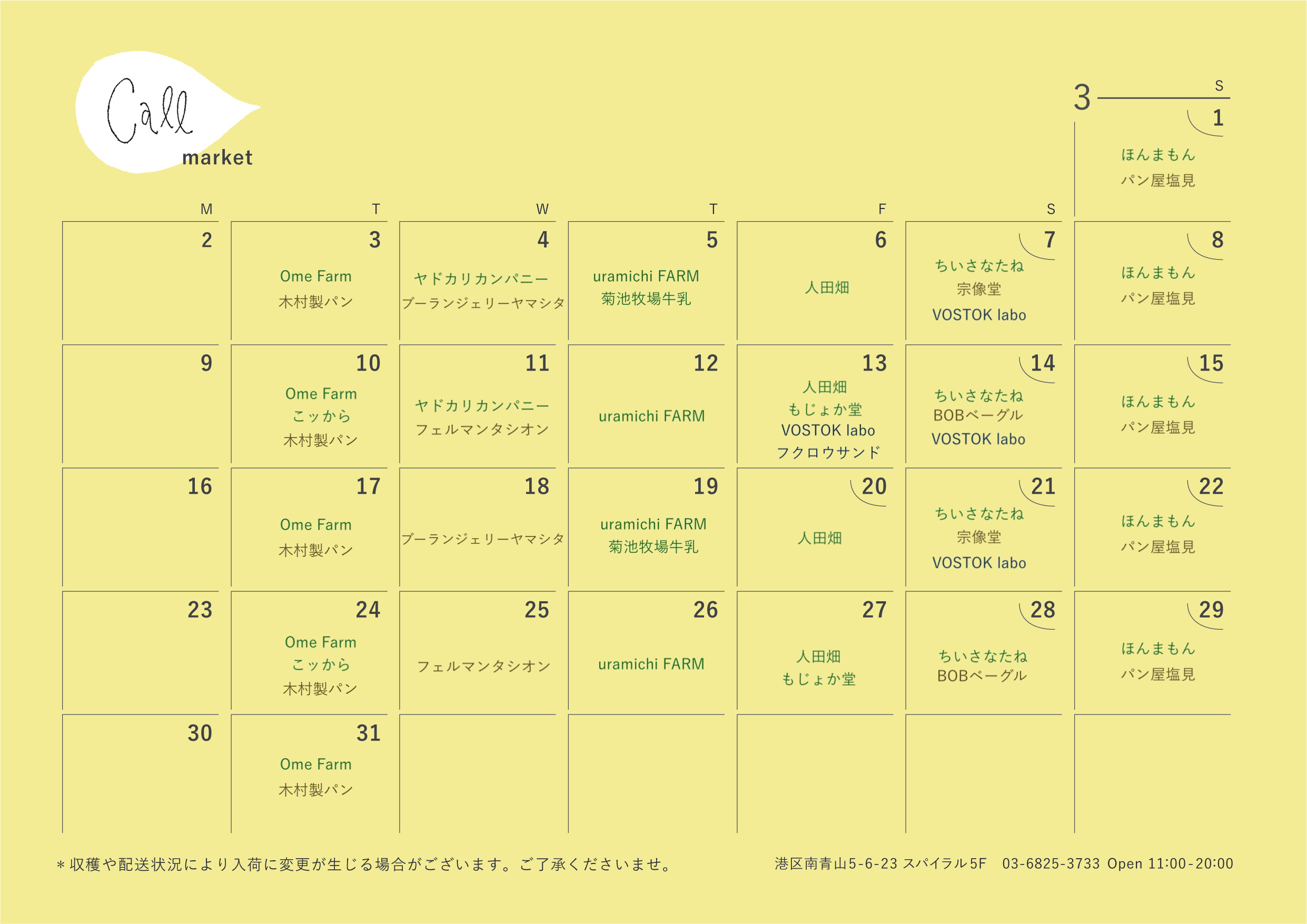 callマーケットカレンダー | 2026年3月